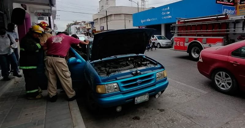 Camioneta a punto de incendiarse en centro de Ciudad Madero