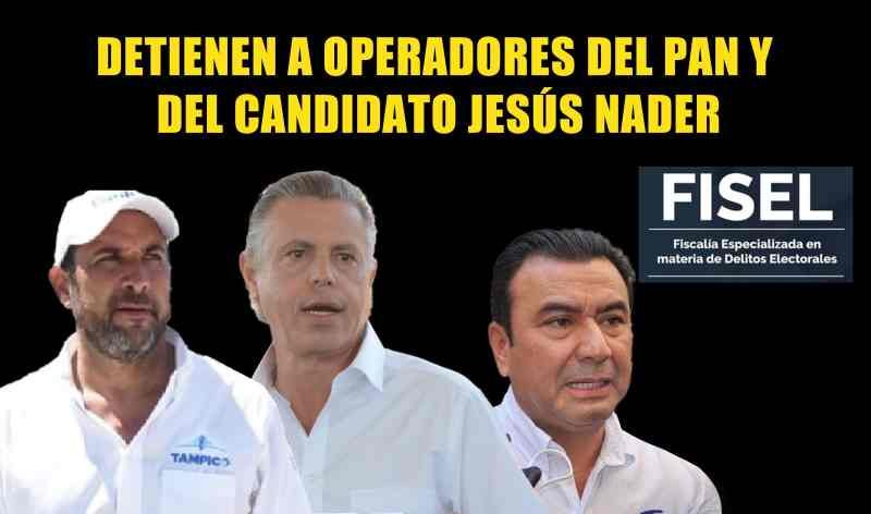 Derivado de un operativo realizado por la Fiscalía Especializada en Delitos Electorales, la Policía Investigadora y Guardia Nacional detuvieron a los operadores del candidato Jesús Nader y del Partido Acción Nacional, Enrique meza, Germán Pacheco y Aníbal del Sol.