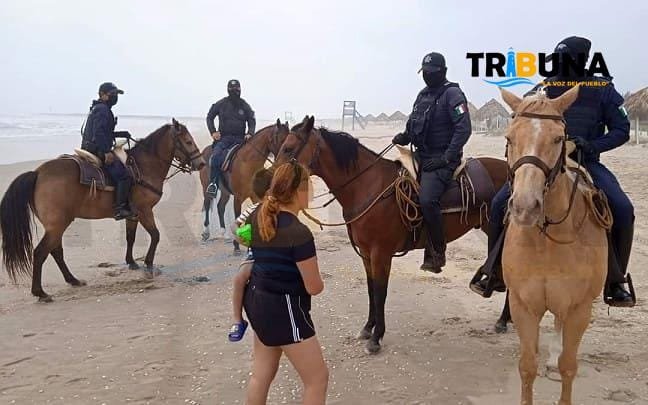 Cd. Madero, Tamaulipas.- La Vigilancia de la zona norte de playa Miramar se realizará a caballo, esto por parte de elementos de la Policía Estatal acreditable.